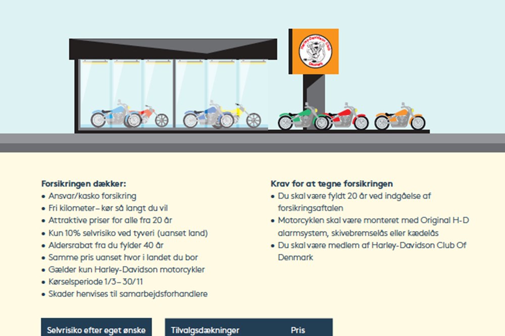 Du får attraktive priser, gode dækninger og helt exceptionelt gratis vejhjælp. Tilbuddet vedr. gratis vejhjælp via Gjensidige gælder for alle H-DCDK medlemmer, der bestiller forsikringen på deres Harley-Davidson til og med 30. juni 2023. Vejhjælpen er gratis, så længe du har forsikringen hos Gjensidige.